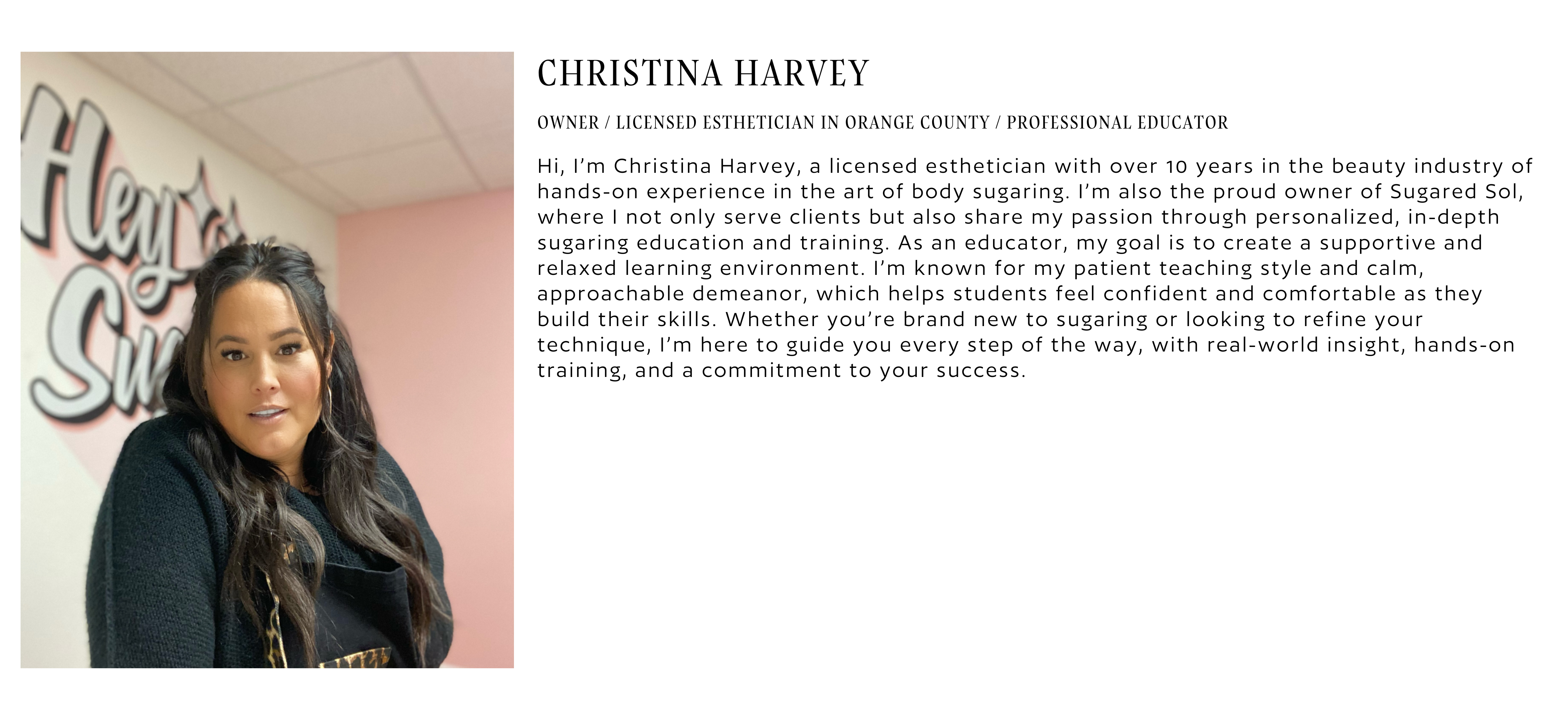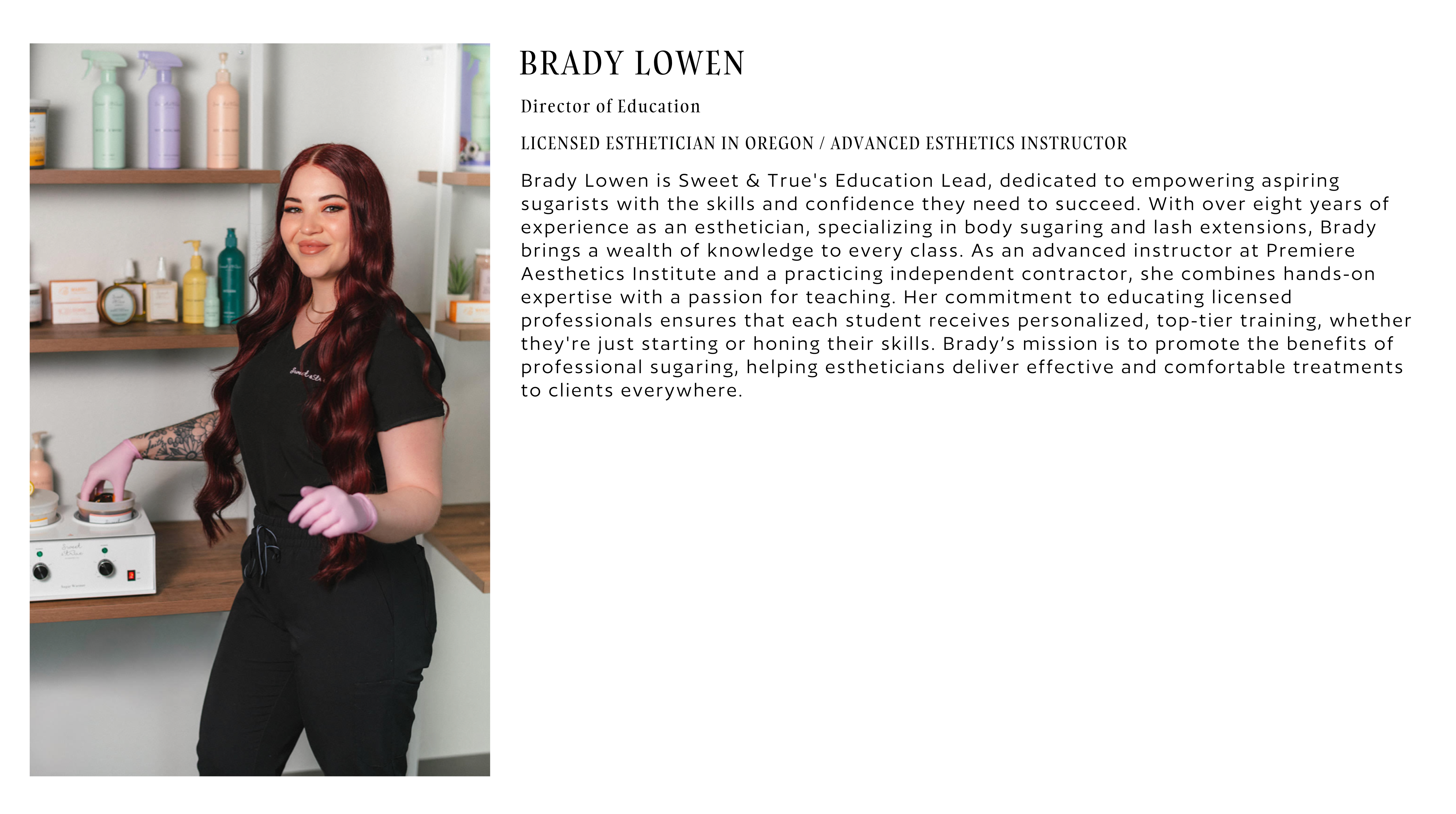 Discover the path to becoming a sugaring master through guidance from educators who not only have a wealth of experience but also run successful sugaring businesses. To guarantee the highest quality of instruction, all our educators boast at least three years of professional experience. Moreover, our commitment to your growth extends far beyond the classroom. We provide ongoing support to ensure you excel in your sugaring techniques, including hands-on guidance every step of the way.